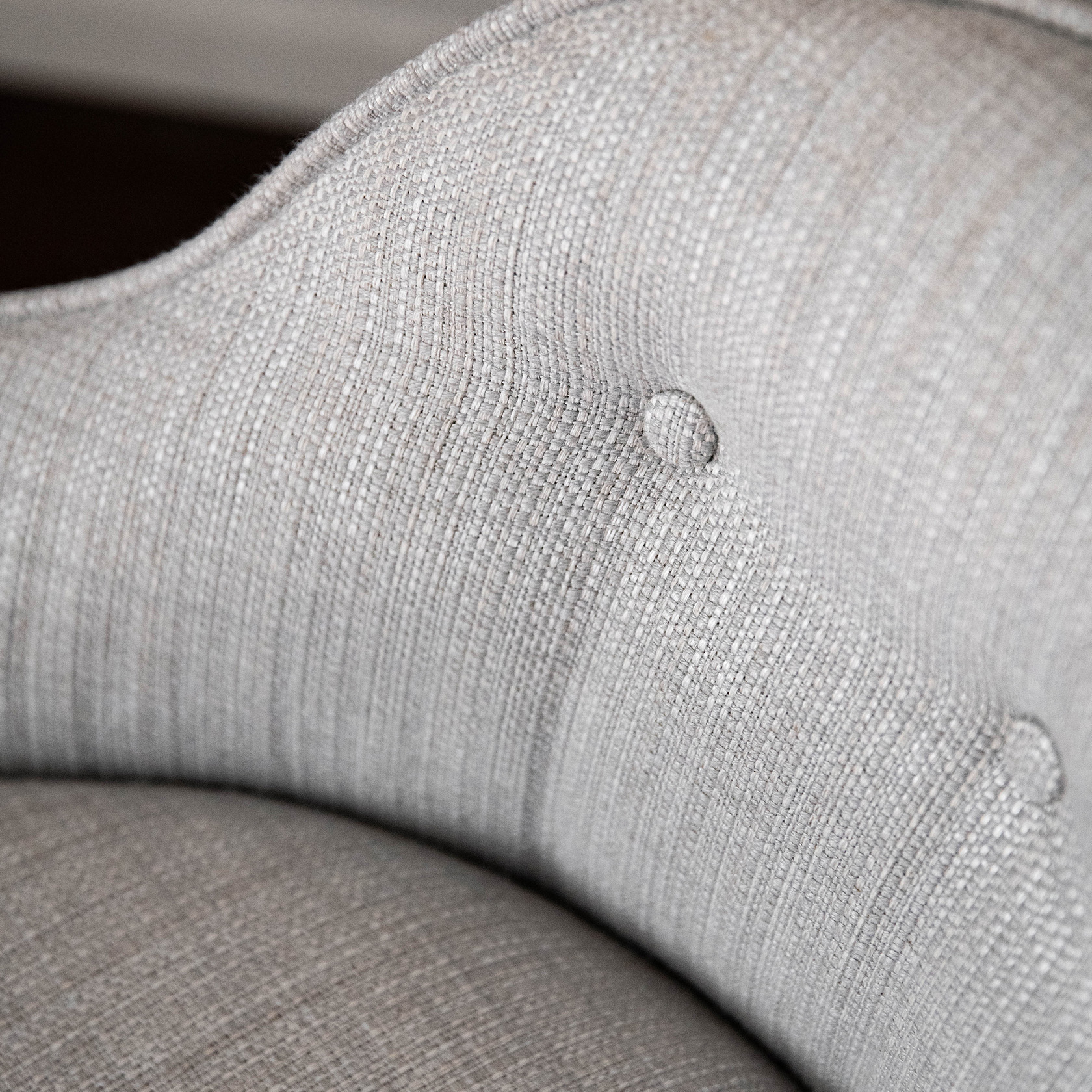 Lou Vanity Stool – Linen Fabric with Velvet Piping & Decorative Tape
