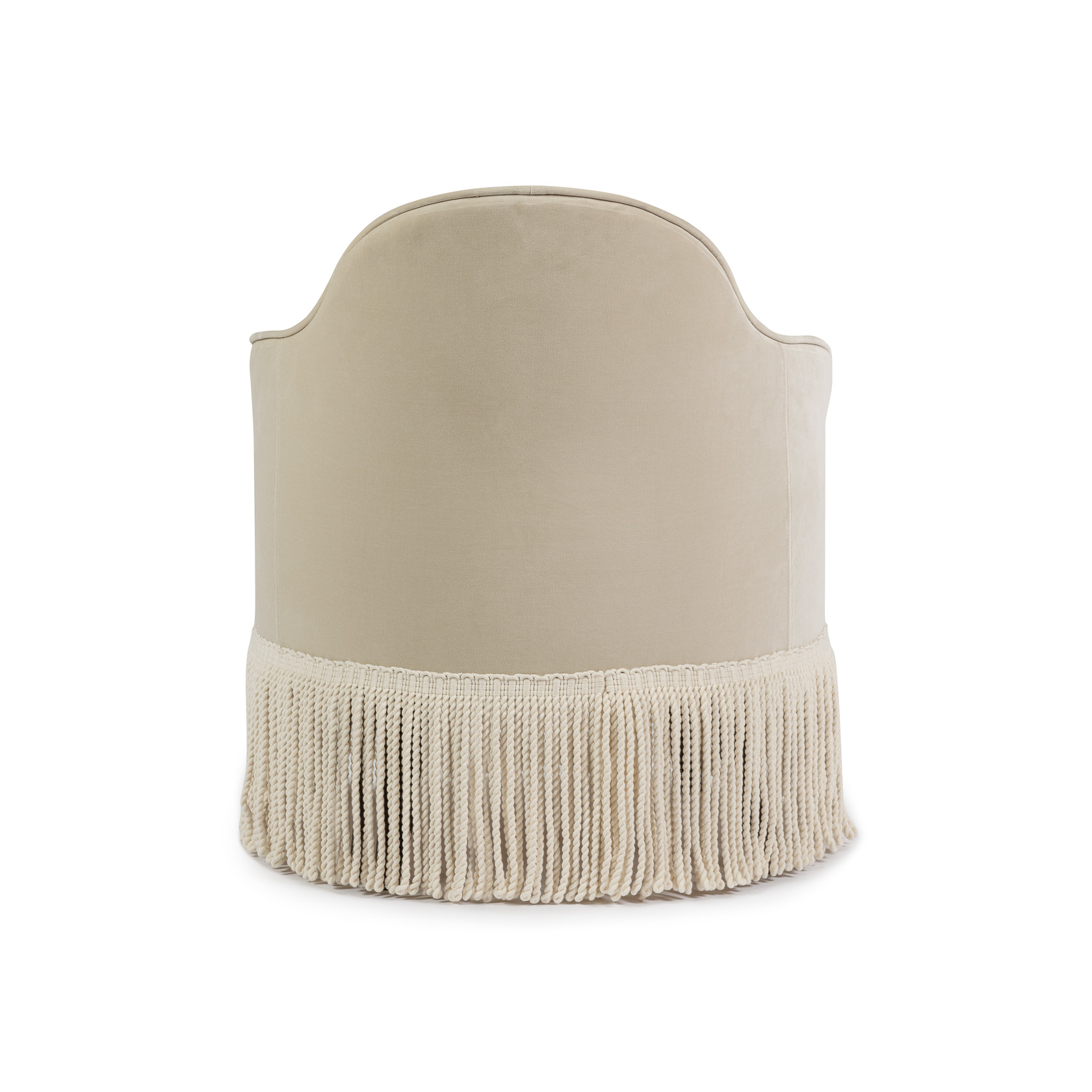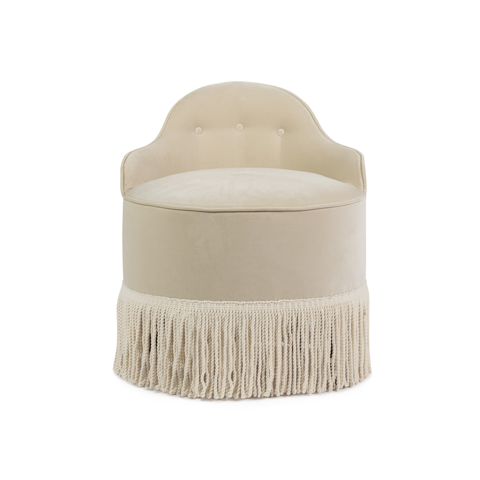 Lou Vanity Stool – Pale Beige Velvet & Fringe