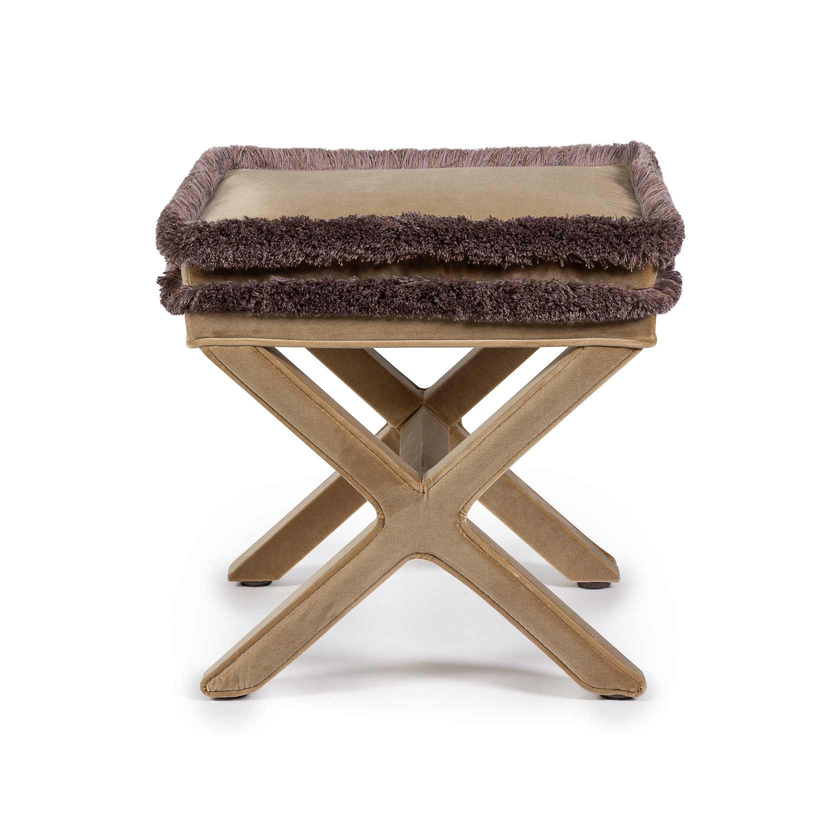 Marcel X Bench – Beige Velvet With Brush Fringes