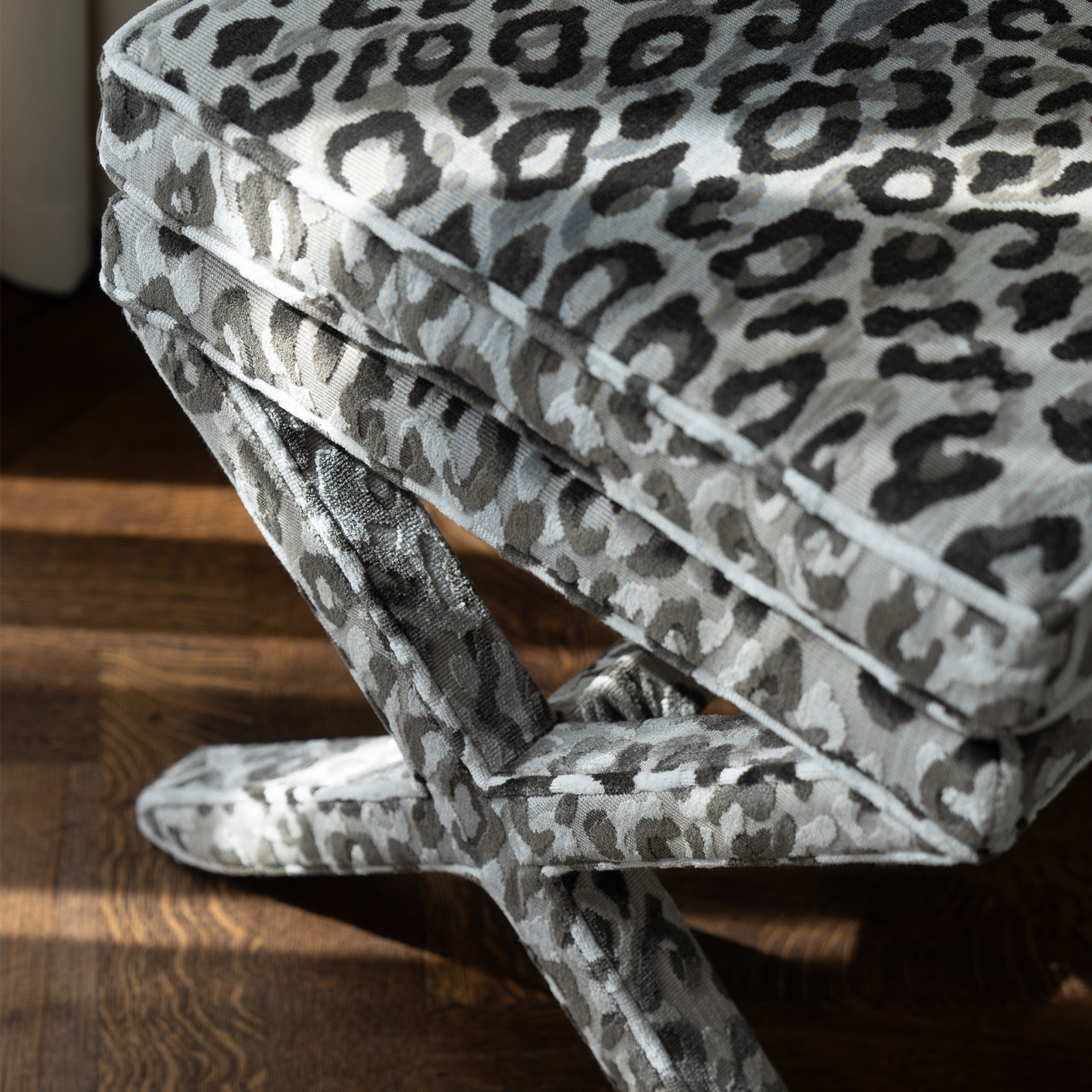 Marcel X Bench - Grey Leo Velvet quantity