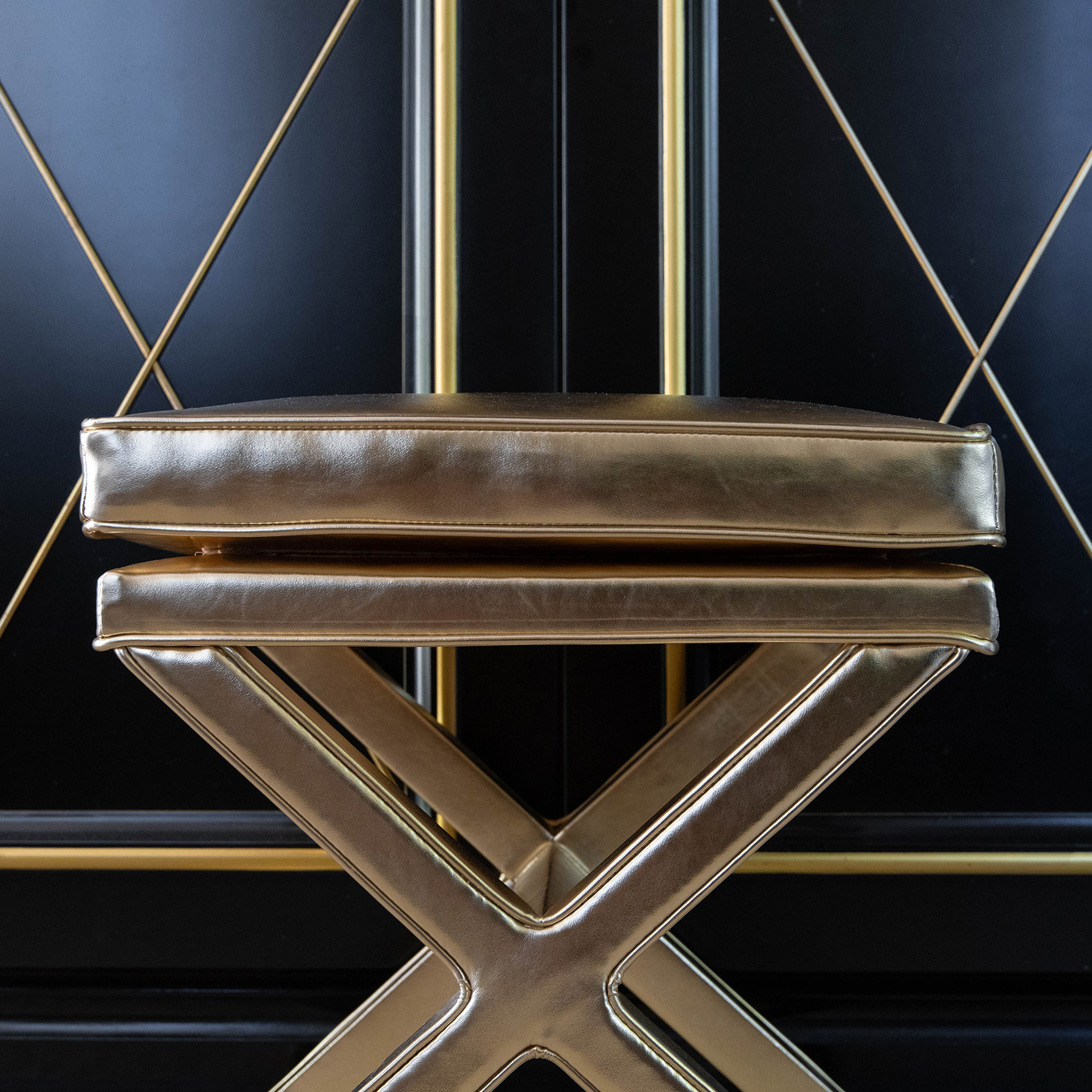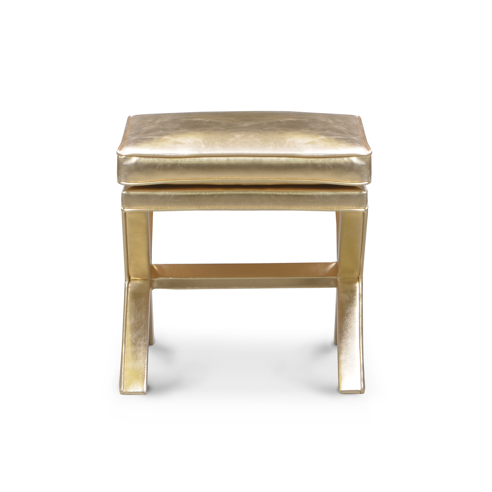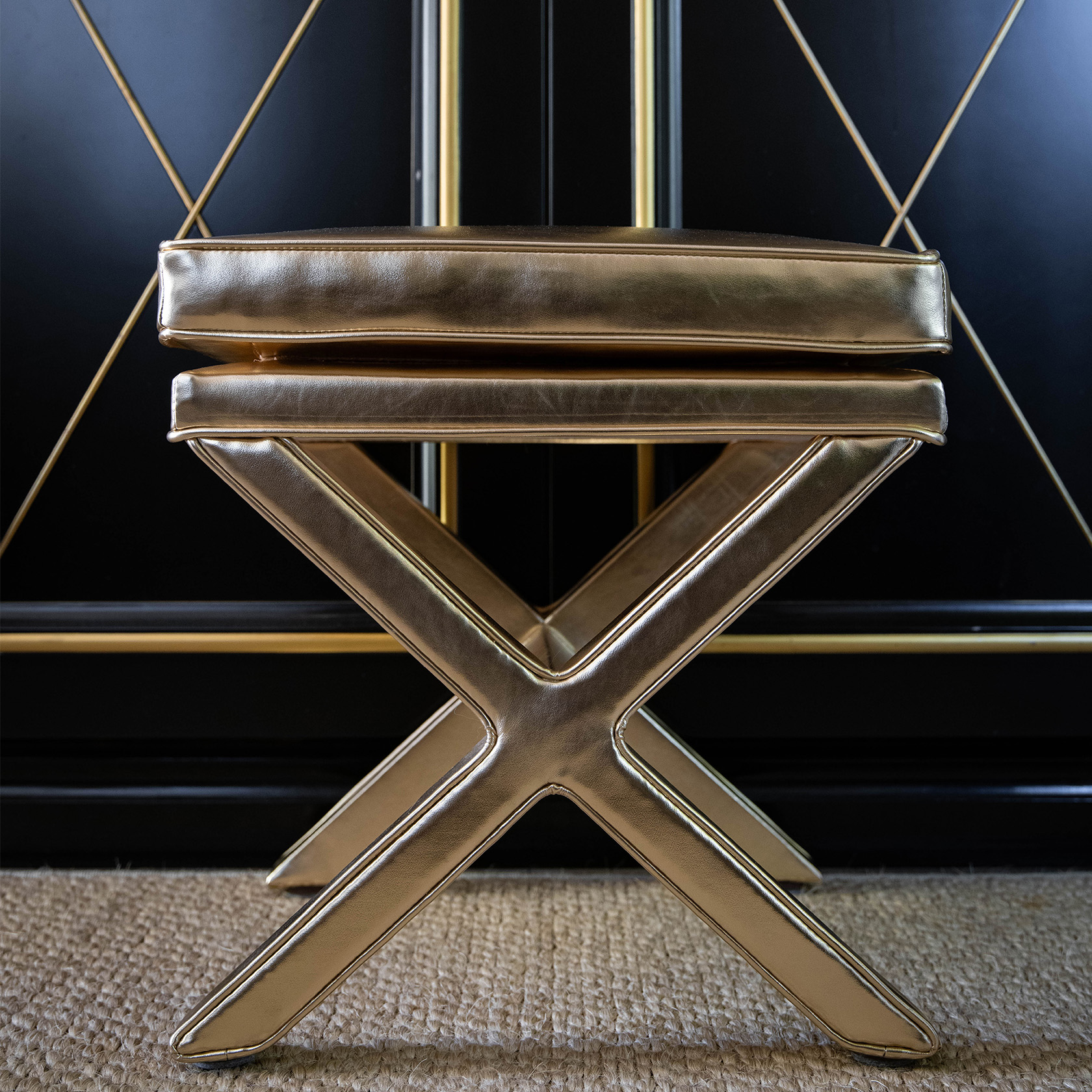 Lou Vanity Stool – Linen Fabric with Velvet Piping & Decorative Tape