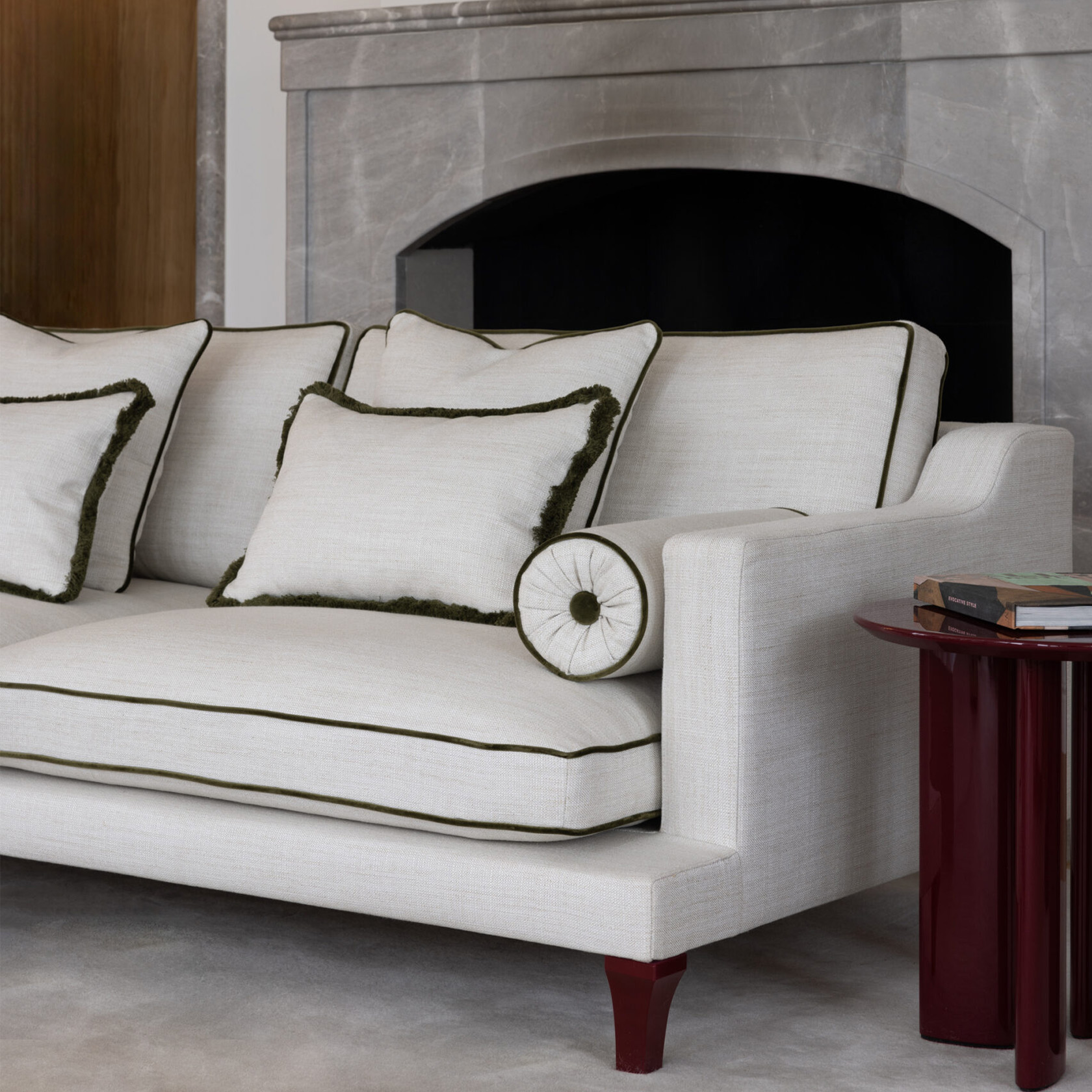 Orlando Sofa – Easy Lustre Fabric, Velvet Piping & Lacquered Legs