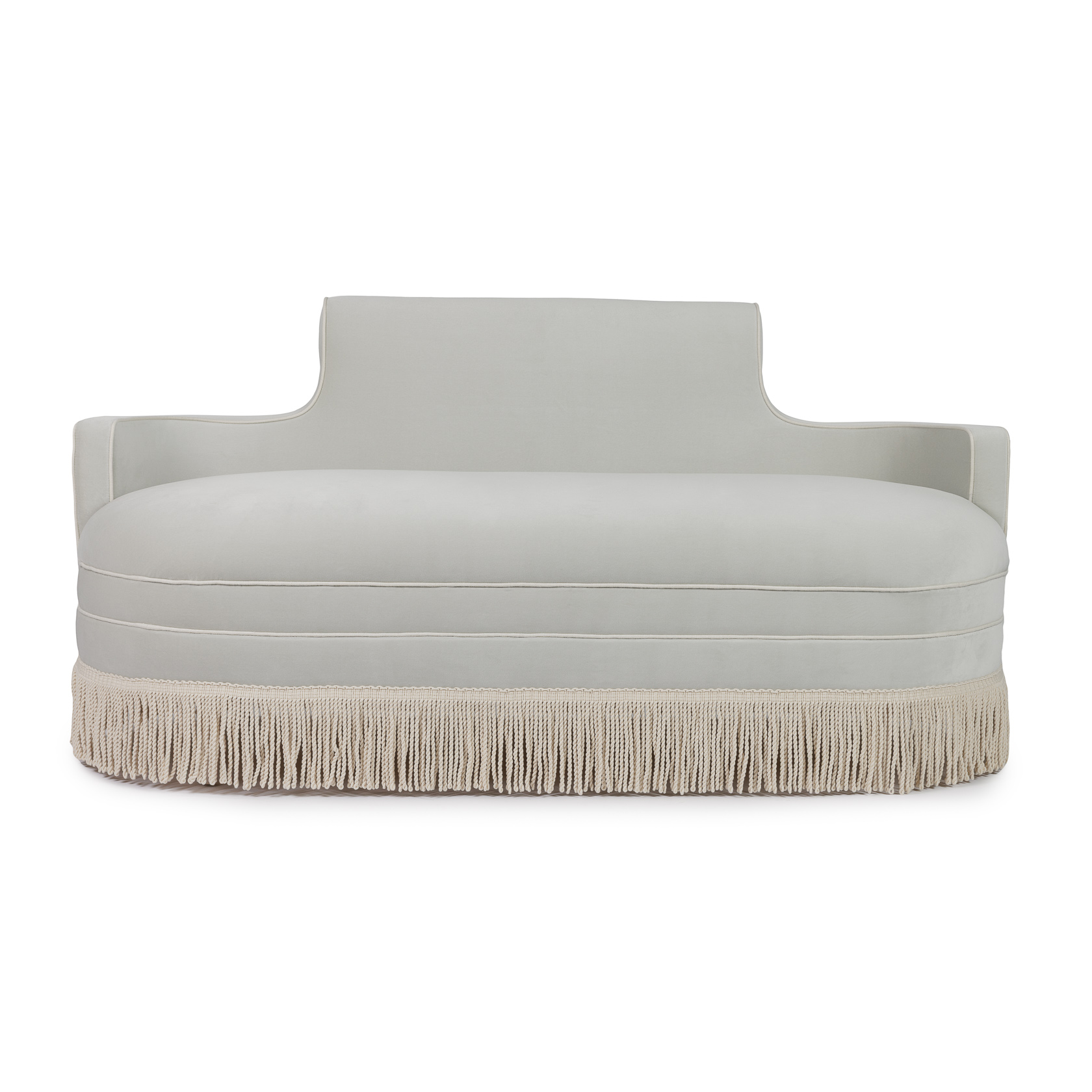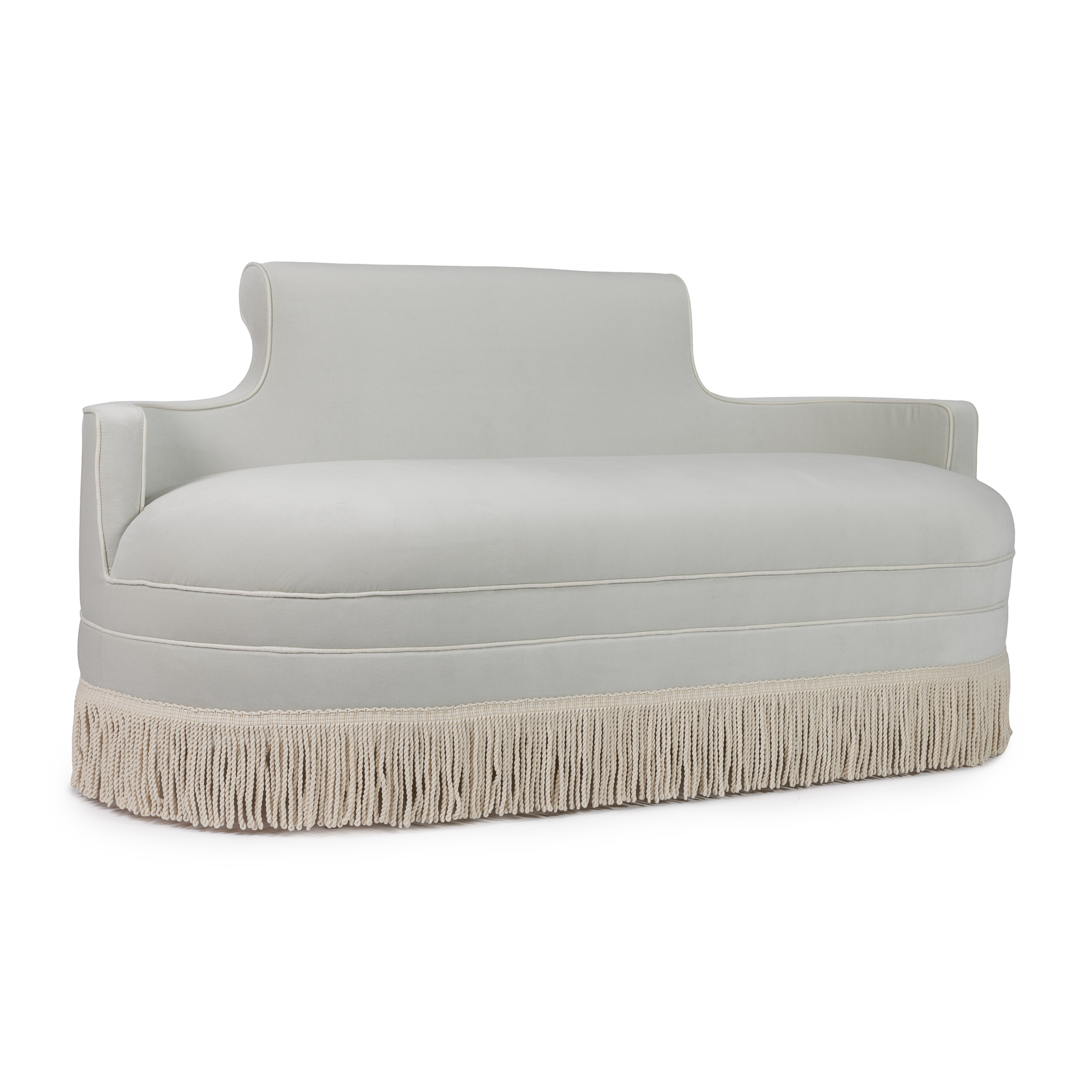Ralph Love Seat – Velvet Seafoam – Ivory Fringe